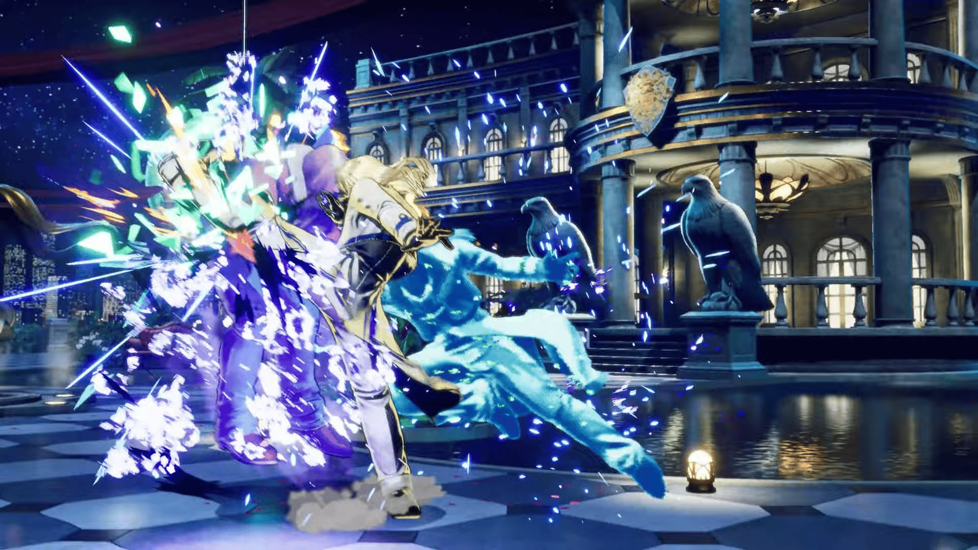 Heinlein possesses his usual flames, along with some detonation projectiles that can negate others before they’re set. Kain’s zoning efforts are still present. His Himmlische Atem super is also here, but for his Hidden DM, it’s just as flashy as the Mark of the Wolves Skyfall. Charging is Kain’s game, and he can be scary when he does it. Kain’s original stage is still intact as well.