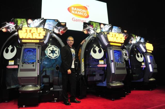 [KGVID poster=”https://www.theouterhaven.net/wp-content/uploads/2015/01/Star-Wars-Battle-Pod.png” width=”640″ height=”360″]https://www.theouterhaven.net/wp-content/uploads/2015/01/10839149_10152637650131186_813866533_n.mp4[/KGVID]Last October, BANDAI NAMCO Amusement America announced an exciting advancement in arcade entertainment with Star Wars™: Battle Pod™. Star Wars: Battle Pod features a special dome shaped screen that surrounds a player’s field of sight, controller and seat vibration synced with the action taking place on screen, special air blast technology that simulates wind that’s felt during flight, and 5.1 surround sound. All these features come together to provide the most cinematic Star Wars™ arcade gaming experience possible to fans.