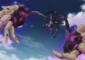 In match two, Sekai Kamiki and his comrades from West Tokyo’s Seiho Academy Middle School will face Minato Sakai and Tendaiji Academy, representing Osaka. Before the first battle, sparks fly between the members of each team, centering on Sekai. Then, in a battle stage made up of floating islands, the curtain rises on the match between the Gunpla Academy and Granada Academy. Controlling the Crossbone Gundam X1 Full Cloth (Wicked assed Gundam if I say so myself), Lucas begins a one-on-three battle against the Gunpla Academy.