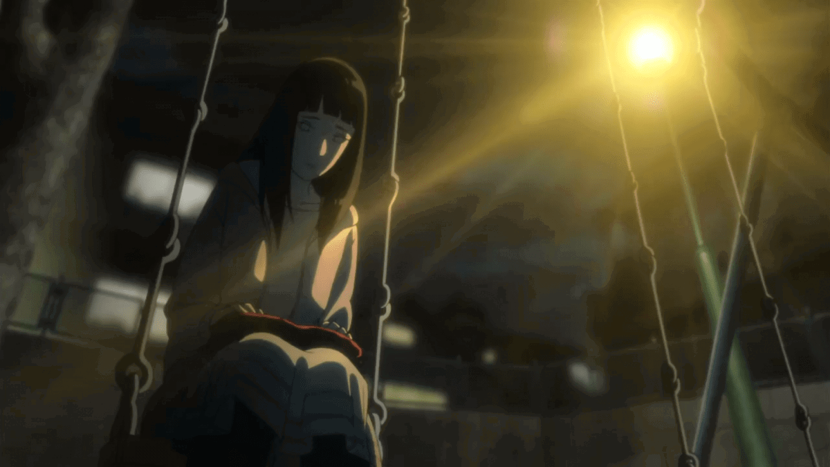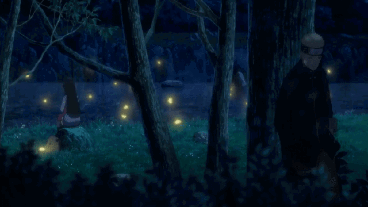 The movie starts out with flashbacks of Naruto and Hinata as children and how Naruto tries to protect Hinata from some bullies and fails miserably, but Hinata takes notice of this. We then see them in class where Iruka-sensei says “in the event the moon will fall and the world will end, write the name of the person you want to be with in the end.”