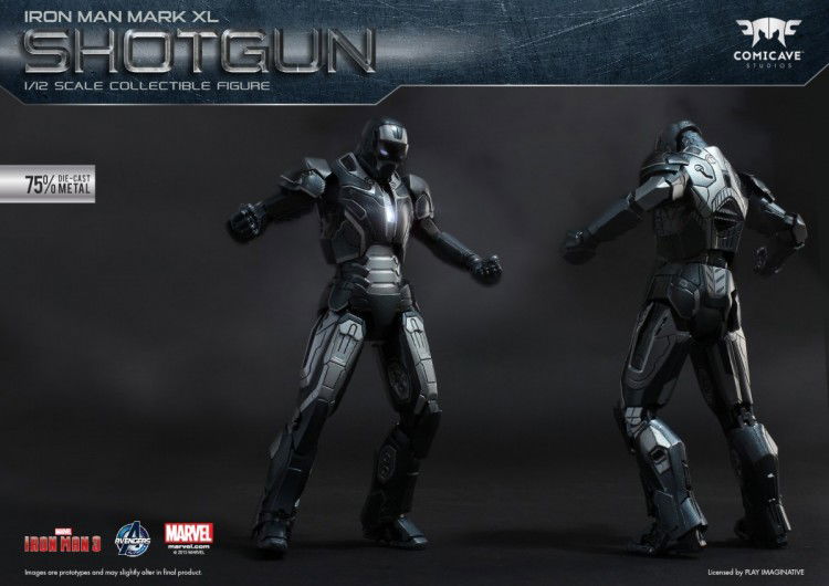 The Iron Man Mark XL “Shotgun” is the first product in an exclusive new product distribution agreement with Singapore-based collectables design company and manufacturer, Comicave Studios. Bluefin plans to carry and distribute variety of premium Comicave Studios figures based on Iron Man 3, Avengers: Age of Ultron and Transformers 4: Age of Extinction beginning next year.