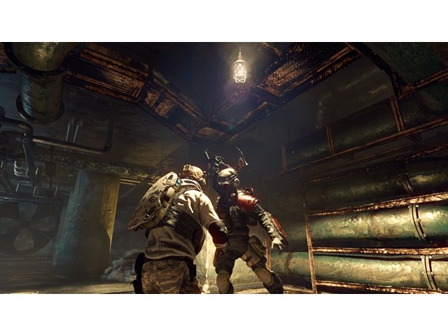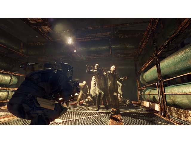 In order to face all these threats, players will be equipped with gun and grenade based weaponry as well as specialized gear that add an extra layer of Resident Evil flair to the action. The non-traditional arsenal includes the Brainer (a powerful melee axe which goes straight into the skull), Tactical Shield (an arm-mounted guard allowing players to utilize a zombie as cover), Terrain Spikes (boot-mounted spikes for trampling the enemy), and Zombie Jammer (a device which repels zombies only when active). Players must be quick and strategic in changing up their tactics and weapons to win against the opposing team in this all-out brawl.
