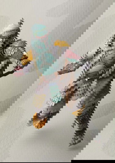 The “Ronin” Boba Fett was designed by artists Takeyuki Takeya and Junichi Taniguchi and joins a pair of other figures in the Meisho Movie Realization Star Wars line that are also currently available – the “Ashigaru” Stormtrooper and the Samurai General “Taisho” Darth Vader. Each figure is unique and comes clad in a custom designed set of armor and outfitted with an array of feudal era inspired weapons and other accessories.