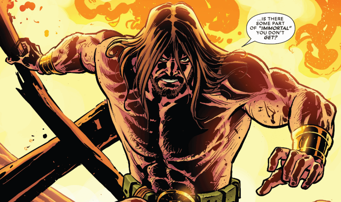 So far, only one of the three new gods was given some form of characterization. Cryptomnesia, the god of technology, possesses an online-message-board-style speech pattern which can be borderline jarring to somewhat funny at best. Catastrophobia, the god of war, seems to live up to his name and proves a near physical match for Hercules and showcasing unique, war-inspired abilities of his own.