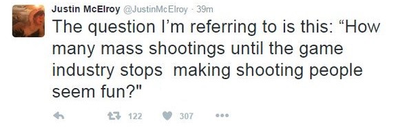 His little follower is just as bad. “How many mass shootings until the game industry stops making shooting people fun?”. I hate this type of bullshit too. This line of thinking places the blame squarely at the feet of video games and the developers, like they are the ones responsible for one man taking 50 lives. There are a million factors that go into the human mind at anytime and there is never any reason to blame an external stimulus. People like the shooter are fucked up for their own reasons, and no video game, book, movie, religion, or anything else external should be blamed for something that happened. This has been proven as FACT for 2 decades now, but it’s stupid people like this, and the fear-mongering media, that keep bringing this stupid shit up.