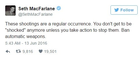 Now here we have everyone’s favorite space-case Brianna “I’m always the victim” Wu and Seth MacFarlane talking about gun control. I know it’s a little harder to see with Brianna’s tweets as she surrounds it with attention getting dogma and special snowflake-isms, but it’s right there in the middle. As for the content both of them are talking about, there is some merit there. Banning automatic weapons or at least restricting the sale of said weapons is a good idea on paper. As Brianna points out, my country (Australia) banned the sale of automatic weapons completely over 20 years ago, along with placing restrictions on guns in general. For the most part this has worked. Gun violence is indeed down in Australia to the point where we rarely hear about someone going into a place and shooting down a bunch of their fellow human beings.