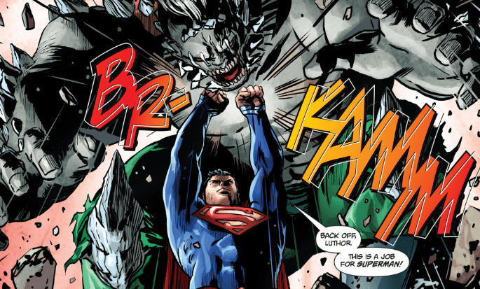 Lex’s tendency to compete for the spotlight is still very prevalent as he tries to defeat the Doomesday by himself. Readers can almost feel Luthor’s desire to be the center of attention and outshine Superman by his own actions in battle and even Luthor saving people still does not come off as genuine as seen by his dialogue.
