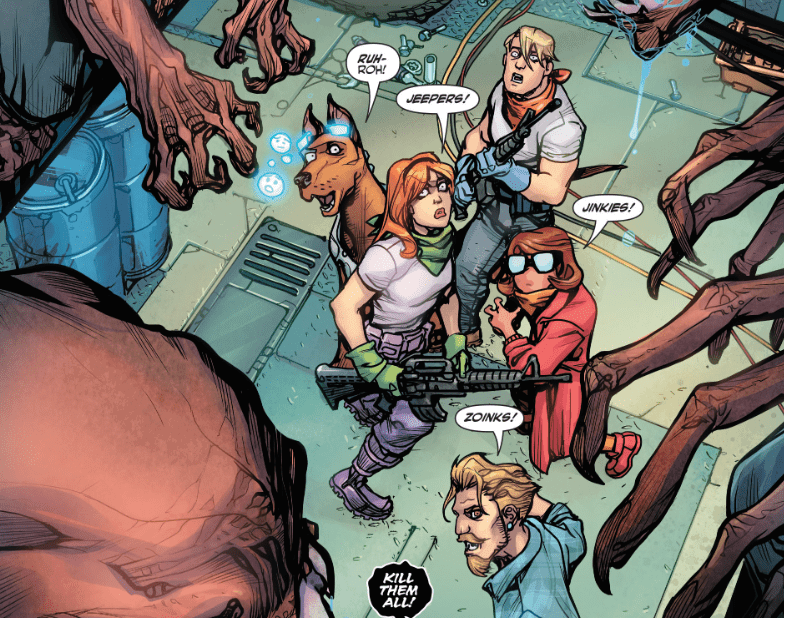 The only two character readers might be alright with are Shaggy and Scooby. Shaggy is still the same, asking questions, thinking calmly and rationally, and basically, he is not being antagonizing to anyone. And while last issue had a very uncomfortable prologue story featuring the franchise’s favorite canine, Scooby appears to braver in this series, especially when he attempts to attack the monsters a few times which is a step up for the cowardly pup.