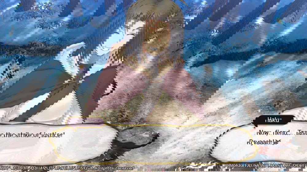 Originally known as Utawarerumono: Itsuwari no Kamen in Japan, Mask of Deception is a grand tale meant to enchant the hearts and minds of players in search of incredible journey. The game begins atop a snowy mountain where the protagonist awakens in an unfamiliar wilderness, surrounded by deadly creatures, with nothing but a hospital gown and a splitting headache. However, he’s eventually rescued by a beautiful girl named Kuon, who sports both adorable animal ears and a beastlike tail. Finding that the hapless man has no memory of anything, Kuon decides to take the amnesiac into her care, naming him Haku. As their journey takes them across the land, Haku will (reluctantly) encounter colorful characters (yes, that means more animal people), build deep relationships, battle ruthless enemies, and find himself inexorably dragged into the political machinations of the mighty nation of Yamato.