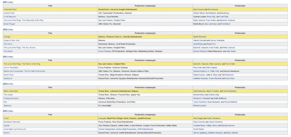 Academy nominations from 2001 to 2005. Notice the change after 2002.