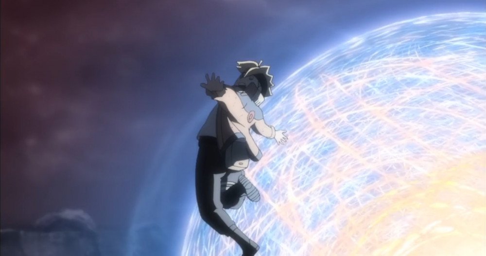 Boruto doesn’t make much progress and ends up running into Kuusuke. He talks him into using the technology during the chuunin exams, but he’s eventually discovered by Naruto and is disqualified. Right as that happens, the two Kaguya-looking people, Momoshiki and Kinoshiki Otsutsuki, show up and kidnap Naruto. Boruto tags along with Sasuke as they chase after them on a rescue mission. The two from the Otsutsuki clan are defeated and the movie comes to an end with Boruto finally gaining an understanding of the importance of his father.