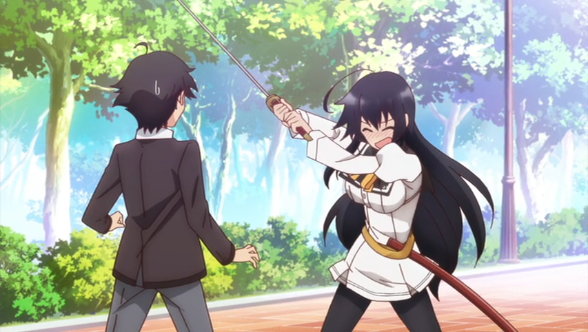 Karen is a girl from a samurai family who carries a katana on school grounds. Her fear of insects causes her to reflexively slash others nearby even though their clothes are often the primary casualties. After Karen inadvertently experiences a humiliating defeat at the hands of Kimito, she believes herself to have become weak and swears to stick closely by his side. She is determined to kill him whenever a chance presents itself. She masks her feelings for Kimito with a fake desire to defeat him. She has a sexual arousal with Hakua. There came a point where Karen felt overexcited for displaying her full potential the first time when invading Reiko’s wedding arrangement.