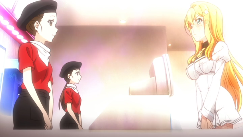 One of the best things about Shomin Sample is how it tackles the subject matter of how some people of a higher class might not understand the everyday things that most people do in everyday life. From eating Cup Noodles to ordering your own meal at McDonalds, these things seem like fantastical amazing things to the girls of the school. The best example of this is Episode 6 “Step Outside” where the girls are sent to a specially made theme park called Shomin Land where they can do things like cross the road, order their own fast food meal, play at an Arcade and other common things while keeping the girls isolated at the same time. The pure amazement and horror about these common day things is what makes the comedy in Shomin Sample really worth seeing. Mistakes are bound to happen, and the girls misunderstanding things is pretty funny. The other half of the comedy is the girls having to work out their own feelings towards Kimito, leading to new experiences and rivalries between them that you could question are due to Kimito himself or the fact that none of the girls in the school have ever seen a guy before.