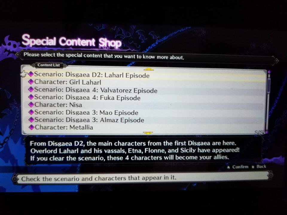 So if you just want to just plow through the story, you can do so with some great characters to start off. Also included is the challenge maps in which you can recruit the other protagonists of previous games, including the original Laharl. All you need to do is find the NPC that is responsible for the Special content. There you can claim your DLC. No muss or fuss about it.