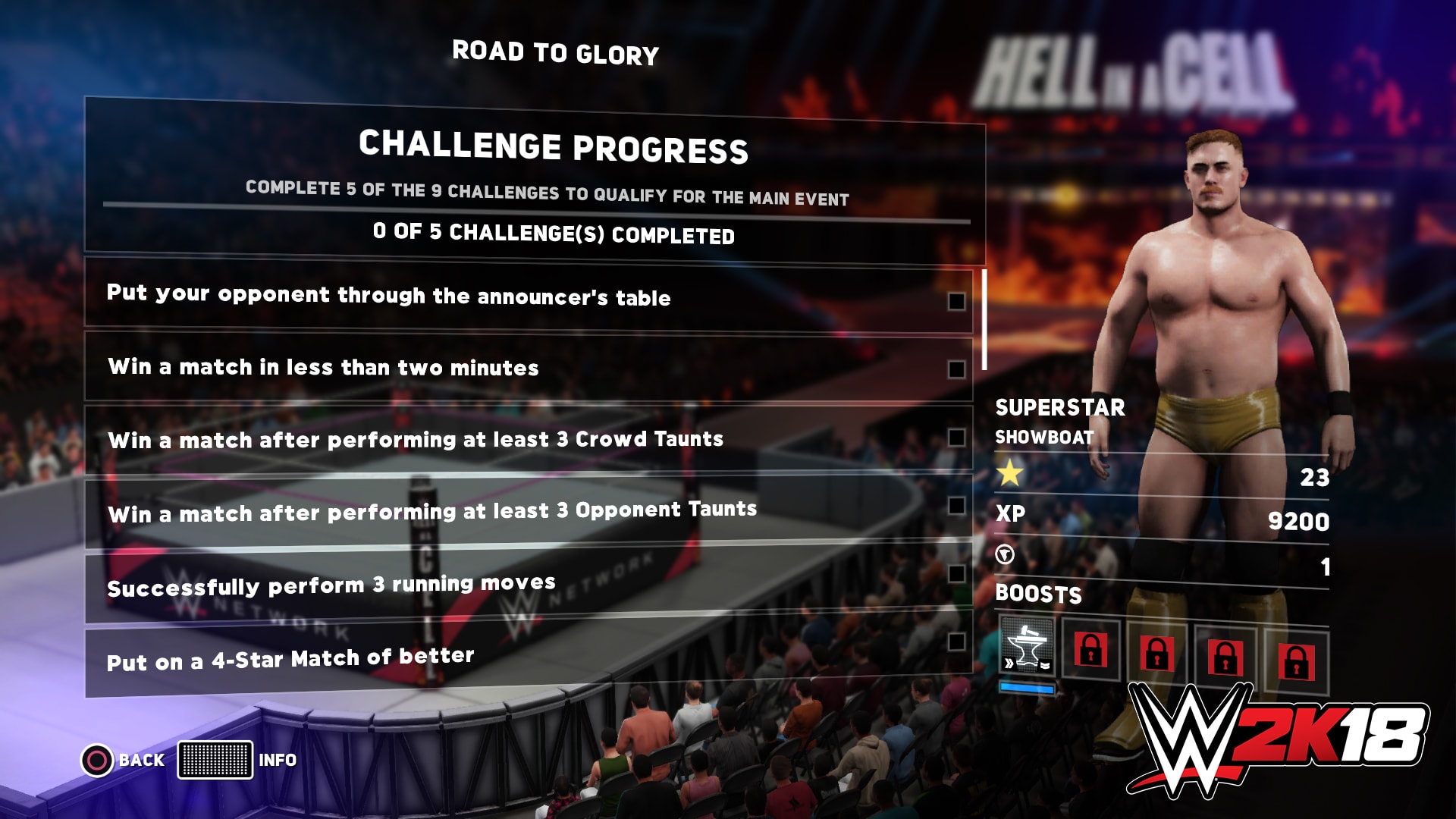 ROAD TO GLORY is a completely new online experience where MyPLAYERS from all over the world battle against each other. Players can compete daily in a variety of match types to gain stars, boosts, Superstar parts and VC. In addition, by increasing their levels, they can further customize their MyPLAYERs to gain the advantage over others. Overall, players are encouraged to see if they have what it takes to secure entry into pay-per-view events and defeat their favorite WWE Superstars to earn special rewards.