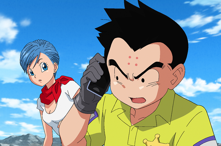 The remnants of Frieza’s army, led by an alien named Sorbet, head to Earth where they convince Pilaf, Mai, and Shu, who have collected the Dragon Balls, to summon the wish-granting dragon Shenron. Sorbet makes a wish to revive Frieza, but Shenron can only bring him back to life in the form of the pieces that Future Trunks cut up, which Sorbet’s minions reassemble using their advanced technology over the following two months. Once restored, Frieza plans revenge against the Super Saiyans, but upon learning that Goku has gotten stronger to the point of defeating Majin Buu, he postpones the invasion so he can train himself for the first time in his life.