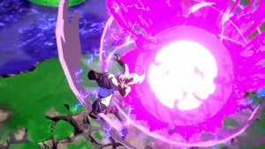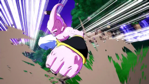 In the video, he shows this off by digging his leg into the ground, which strikes Goku who is about two character distances away from him. Once he connects, he knocks him forward for a devastating hit which bounces Goku away. Only to be caught by Kid Buu’s arm which extends to grab Goku out of the air. He also has a fair share of energy blast attacks. Including one that looks like Frieza’s Supernova attack (the giant ball of death).