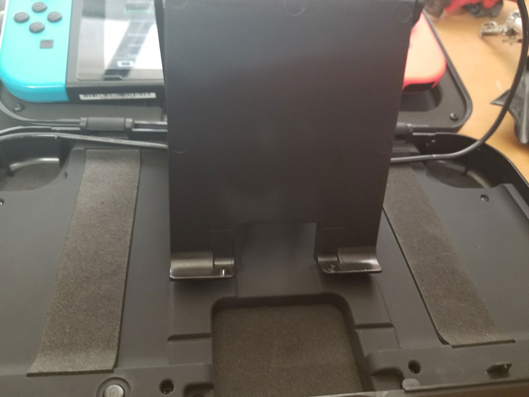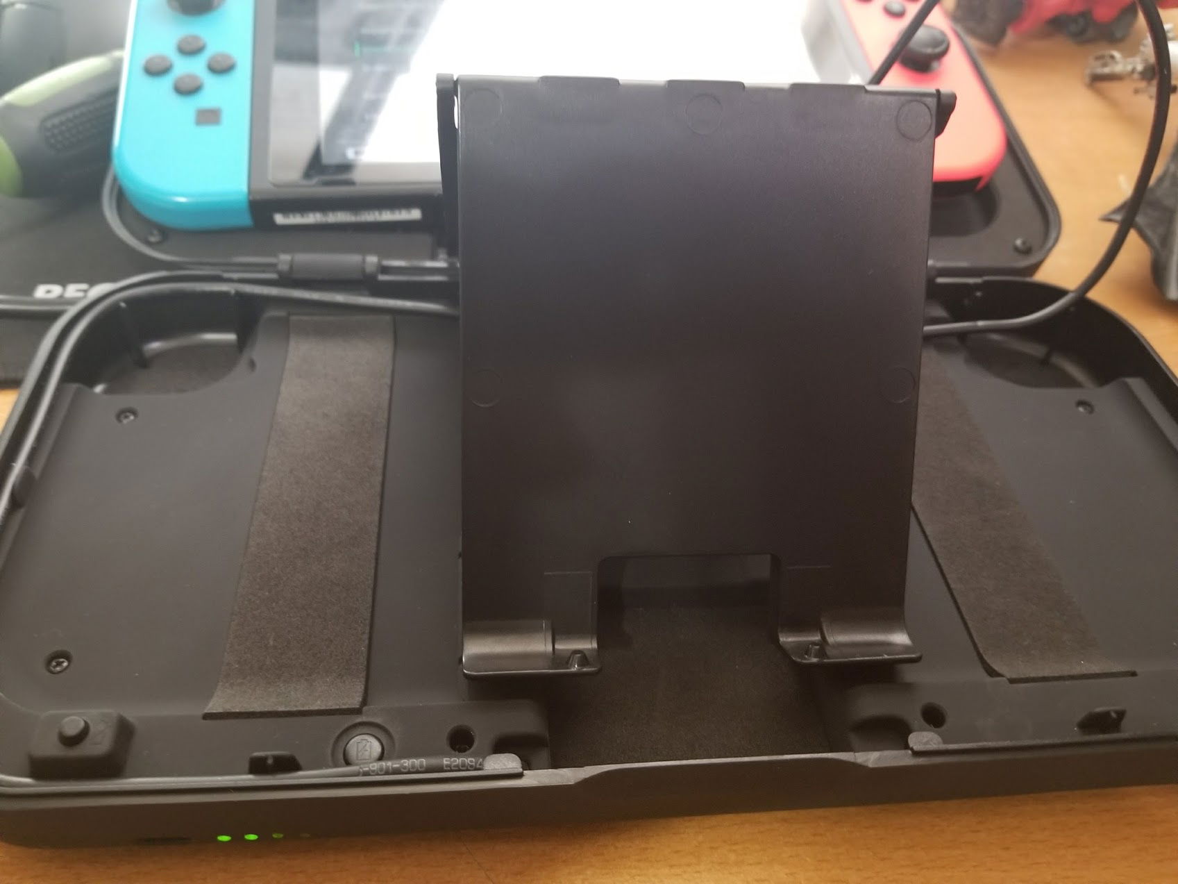 The case also features a fold-out and adjustable kickstand. The Switch will sit on this as it’s being charged. The kickstand adjusts in two different positions and is quite handy when you are playing a game with either the Joy-Cons or another wireless/wired controller. It also made watching videos on Hulu easier, since I didn’t already have a kickstand. The kickstand is adjusted by moving to between two slotted tracks, with the weight of the Switch holding it in place. I would have liked to have it snap into place, but it works out well.