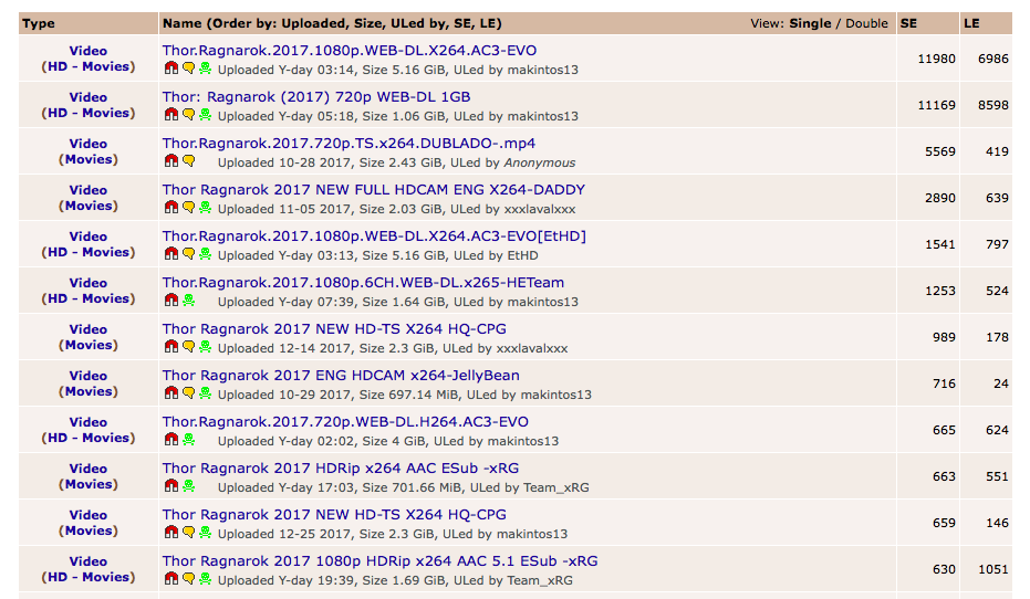 ThorAs you can see from the screenshot above, there are nearly 12,000 people seeding (distributing the full file) and almost 7000 leechers (people downloading the film). That’s 20,000 people in the first torrent alone, with close to 60,000 people either sharing or downloading the film in this one screenshot alone… And that’s just one public tracker, it doesn’t include all the private trackers out there.