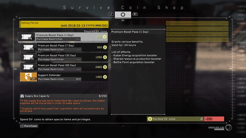 What you see in the screenshot above is an in-game currency system called “Survive Coins”, a currency that is used to buy things from in-game boosts, to loot boxes (oh yes, Metal Gear Survive has those too according to reports), to character slots… Yep, we’ve hit peak rip-off. Character slots. If you want to have more than one character to play in Metal gear Survive, then you are going to need to shell out 1000 SV Coins; which you can buy with real money. In order to buy enough SV Coins to purchase a character slot, you need to buy the 1150 SV Coins pack, which retails for… $9.99!