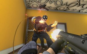 The game’s title stands for “Racketeer Influenced and Corrupt Organizations” Act, a United States federal law relating to criminal organisations. But forget that! Just kick down doors, shoot bad guys, and exploit the element of surprise to gain the upper hand against overwhelming odds, in this cooperative multiplayer first person shooter. Partner up with a friend in local couch co-op or online, to blast through an ever-changing series of procedurally generated levels. Come back every day for daily challenges and, as you play, unlock weapons, weapon customisations, and new “traits”– gameplay affecting rewards that modify, enhance and dramatically alter your characters’ abilities.