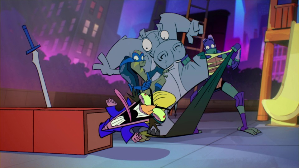 Here we go, the main event. The biggest problem I’m having with Rise of the TMNT in general: the animation. Rise of the TMNT just looks low quality, with models being all over the place at the best of times. All you need to do is look at some of the screenshots I pulled from the previews to see that this looks like something out of the Ren & Stimpy age of lazy animation. Now I’m used to animation quality drops from time to time in a lot of shows, after all I’ve seen Dragon Ball Super. So I can deal with quality drops, but a lot of this shit looks intentional. I’m not too sure who the animation studio is, but this looks like crap, and worse than crap, crap made on a small budget. Maybe I’m just not seeing the visual appeal here since I don’t watch things like Regular Show, Stephen Universe, and most other modern day crap; so I just don’t understand today’s animation style.