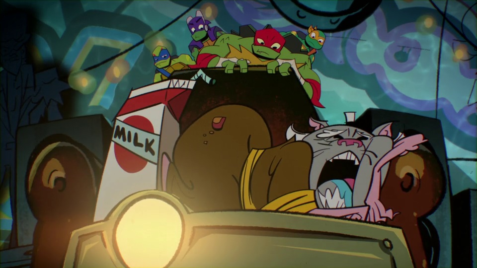 Baron Draxum seems like the type of character that could be a long-running villain. He’s big, intimidating, has a great motivation in wanting to create the perfect mutant and take over the world. But all that is undone the second he sees the TMNT. At that moment, we get sparkles, love hearts and a cutesy face with tears in his eyes. Sorry guy, but at that point, you are just another joke character. That seems to be the whole issue with Rise of the TMNT at this point; no one is allowed to see intimidating or as a treat at all. Everything needs to be as toned down and non-threatening as possible. Here you have a villain that could be great, but you ruin him inside of 10 seconds of introducing him for a “aren’t they beautiful” gag. Sure, for the rest of the episode Baron Draxum was fighting the TMNT and using them as punching bags, all the while saying how great they could be if they only trained under him and all that stuff; but by then how could you take a villain that does the face above seriously after that?