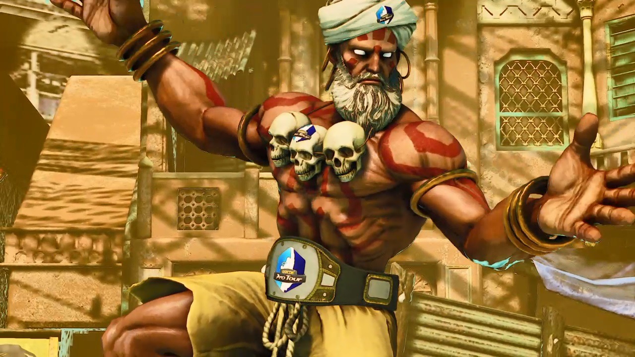 Yep, poor Dhalsim. For those of you who do not keep up to date with Street Fighter lore; those skulls that Dhalsim keeps around his neck are the skulls of children that he couldn’t save in his home village in India. So the smart folks over at Capcom thought that the best place to place a Capcom Pro Tour logo was right on top of one of those skulls. Cause that’s not disrespectful of the dead at all is it?