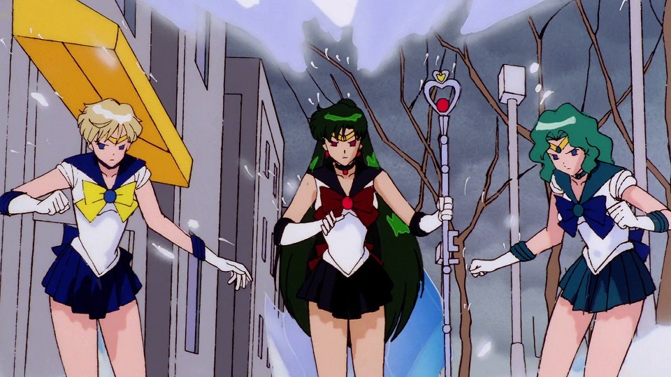 Animation & Sound wise I was expecting a lower quality than I really got. You can see that there was either real effort or a real budget for this film. Backgrounds are nice and crisp and the character animation is bright and active. I especially like that they did with Princess Snow Kaguya, as she is sort of dulled because she is made of ice and snow, it’s a good contrast against all the brightness that comes from the typical Sailor Moon animation. As for the Bluray transfer, you can see that the company went ahead and made sure to clean everything up instead of just slapping the whole thing into the new format; which helps keep the animation looking as good as possible. While this does create a small problem where flaws in the original animation are made all too more apparent. Some of the middle frames of animation hit Dragon Ball Super levels in how horrible they look (See the image of the three extra Sailor Guardians above), while others look very viable of the animation style of the time. These areas where the animation pops from the background due to these scenes being in the older traditional hand painted style stands out way too much, but when in action only lasts long enough that you barely notice it.