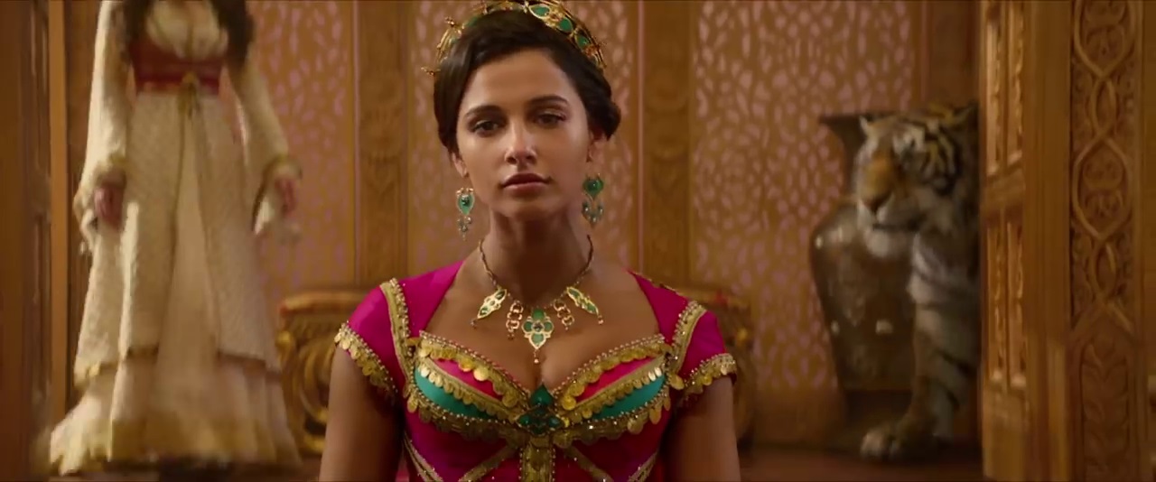 There have been a couple of changes made to the Jasmine character from the one we knew in the cartoon. While Jasmine is seen as headstrong and outspoken, her motivation has changed from trapped princess to a princess who’s ambition is to become Sultan and thus a great leader like her (now dead) mother was. Jasmine’s focus is more on the people of Agrabah and their plight than just wanting to be free to do what she wants. This makes her more focused then the other version, which plays really well with Scott’s portrayal of the character. Scott brings this sensitive yet driven woman onto the screen and makes use of every bit of screen time she is in… even if her solo song “Speechless”, which was made just for this version of the film, grinds the whole movie to an unneeded halt.