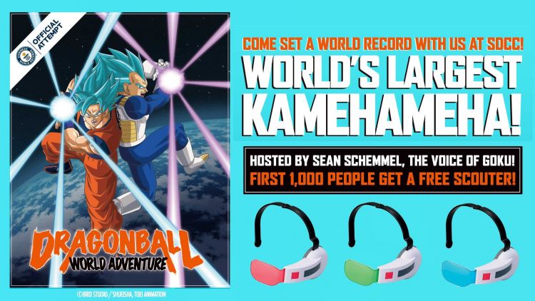 They want you to come and enjoy the experience but they are also sweetening the pot! The first 1,000 people to show up and participate will receive a free Dragon Ball Scouter accessory to wear during the world record attempt! The Kamehameha attack will be spearheaded by Sean Schemmel, the English voice actor for Goku!