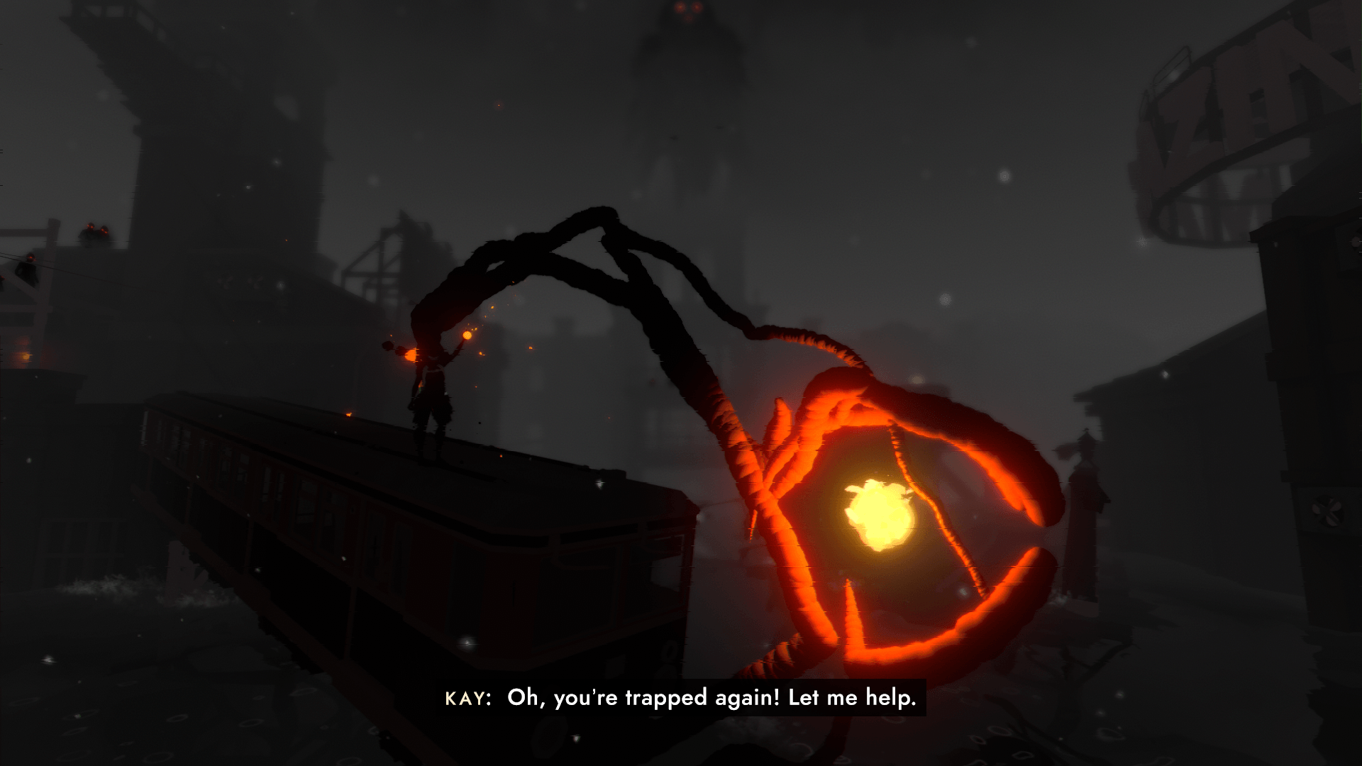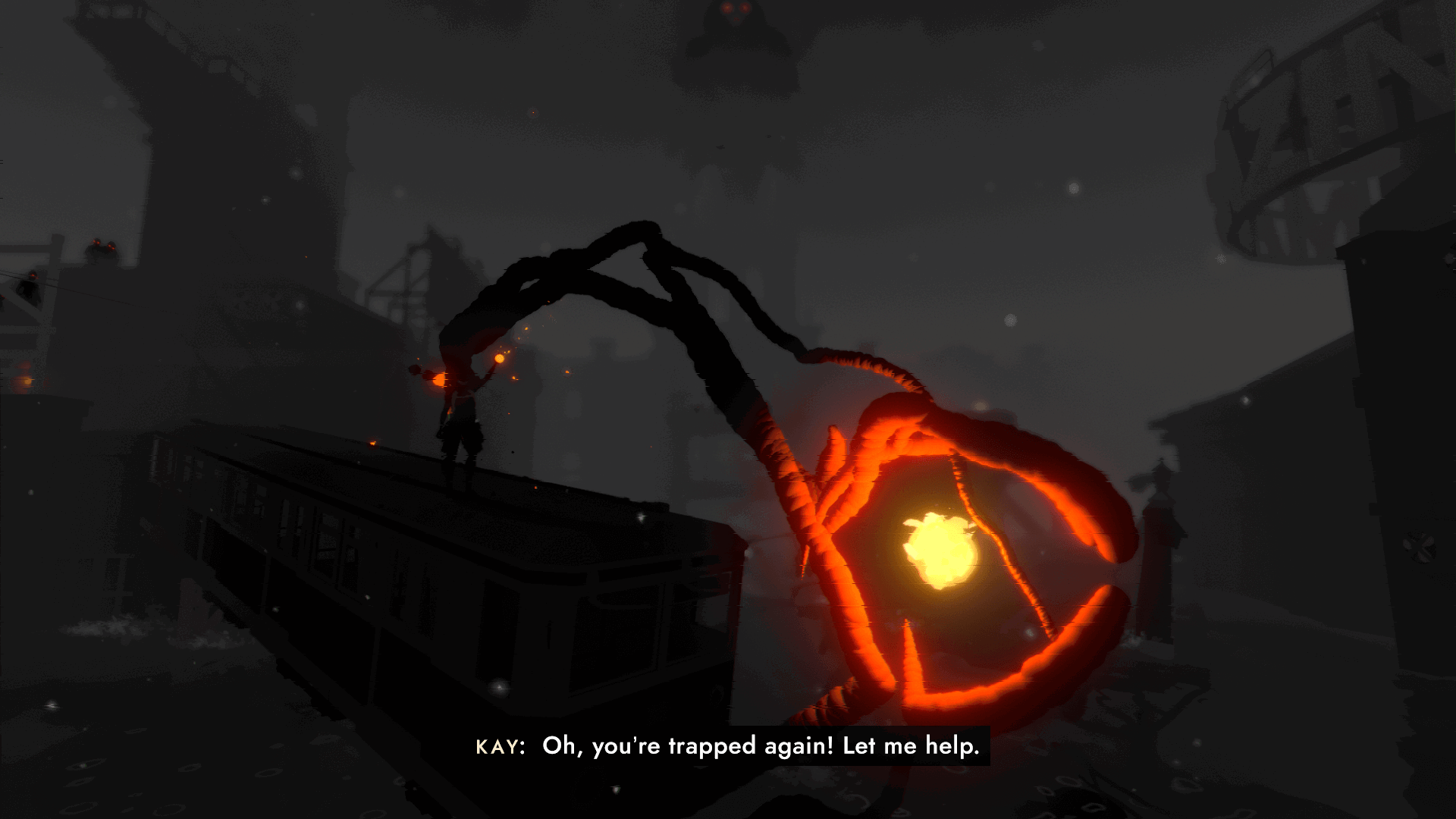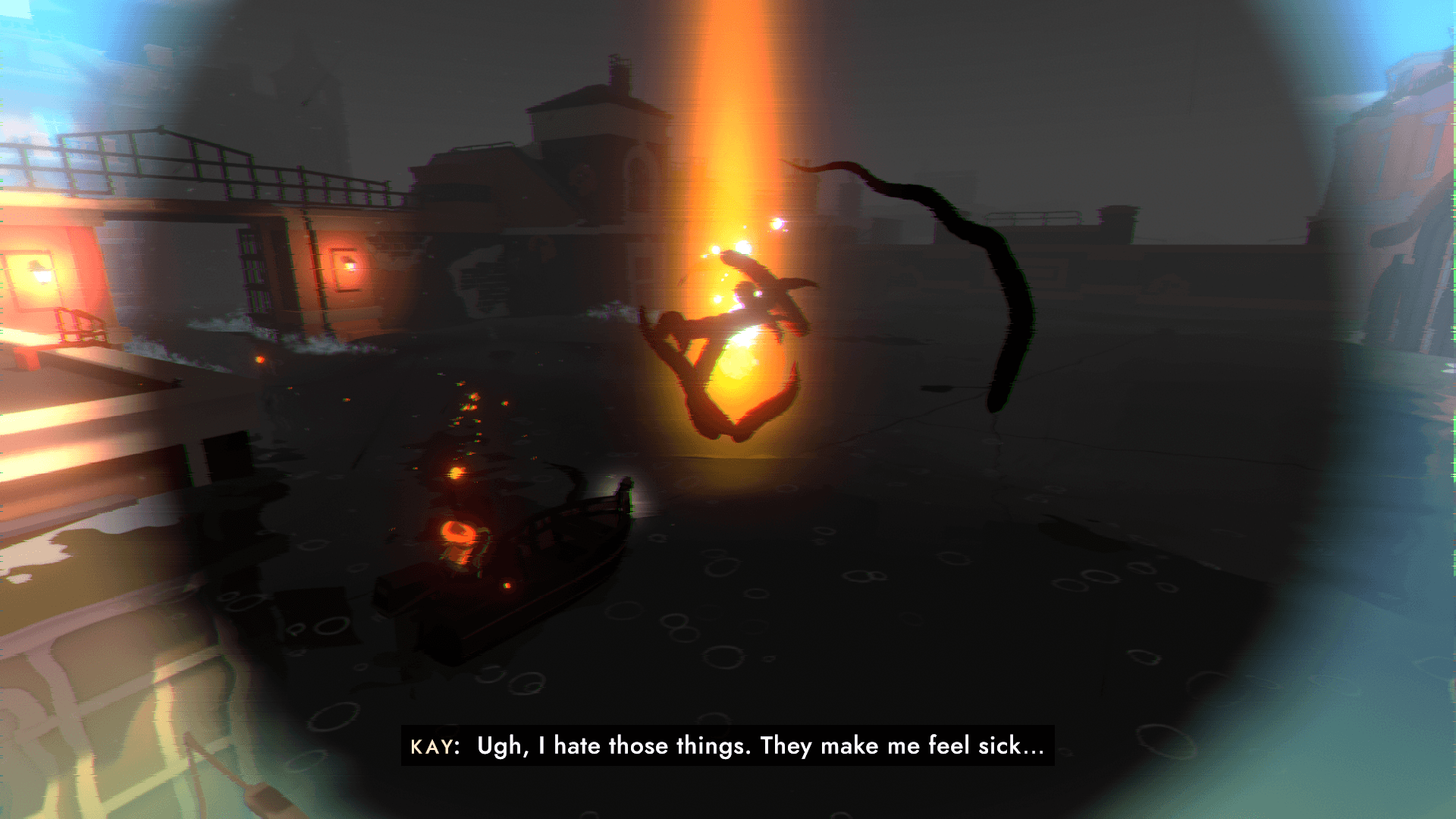 Among the city are several “monsters,” physical manifestations of Kay and her family’s darkest psychic trauma. Kay has to piece together her family, herself and repair the emotional damage caused by her upbringing and early life. The journey leads Kay across several different parts of the city as she attempts to mend the pain, with sea levels rising and falling with her emotional state. This is a game about forgiveness, understanding, and letting go of the emotions that hold you back.