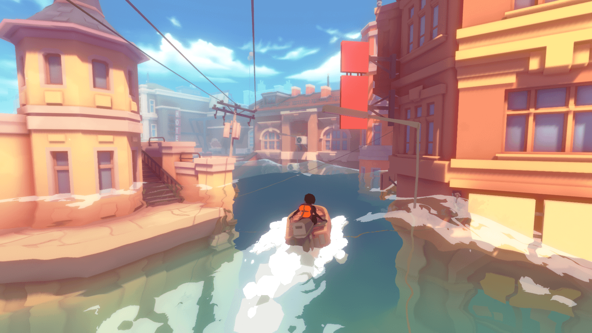 Traversal throughout the game world is interesting enough, though limited to the few aspects of movement used throughout the game. Players can pilot their boat freely as well as run and climb across the city’s environment, but don’t expect a free-form Breath of the Wild style exploration. Climbing is limited to smaller surfaces and ladders, with very few interiors in the game to explore. Players also have access to Kay’s flare, a beam of light that guides you to the next objective/checkpoint at all times. It’s clear Sea of Solitude was always meant to be a linear experience, hinting at some exploratory elements, but not making them the true focus of the experience. With only one specific platforming segment in a dilapidated tower serving as the exception, moving around the game is often just a means to an end when progressing the story.