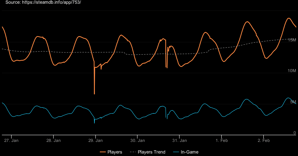 But there's about 1 million less players actually in-game (≈5.8mil vs ≈7mil two years ago).https://t.co/D6WDHbz0B4