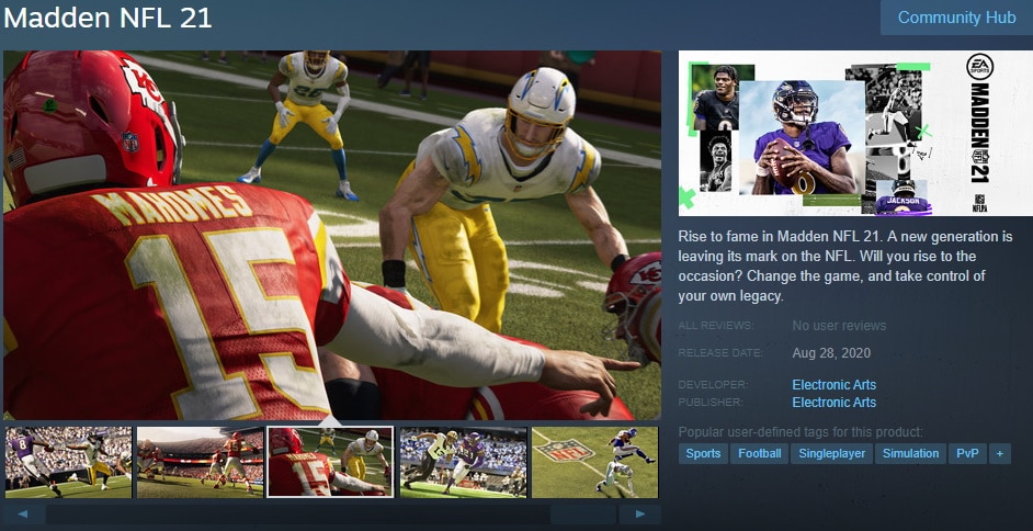 Now that EA is bringing all thier games to Steam, Madden NFL will for the first time, be available in Steam. A new listing has appeared in Steam, that shows the release date for Madden NFL 2 on Steam, and releasing on August 28, 2020.