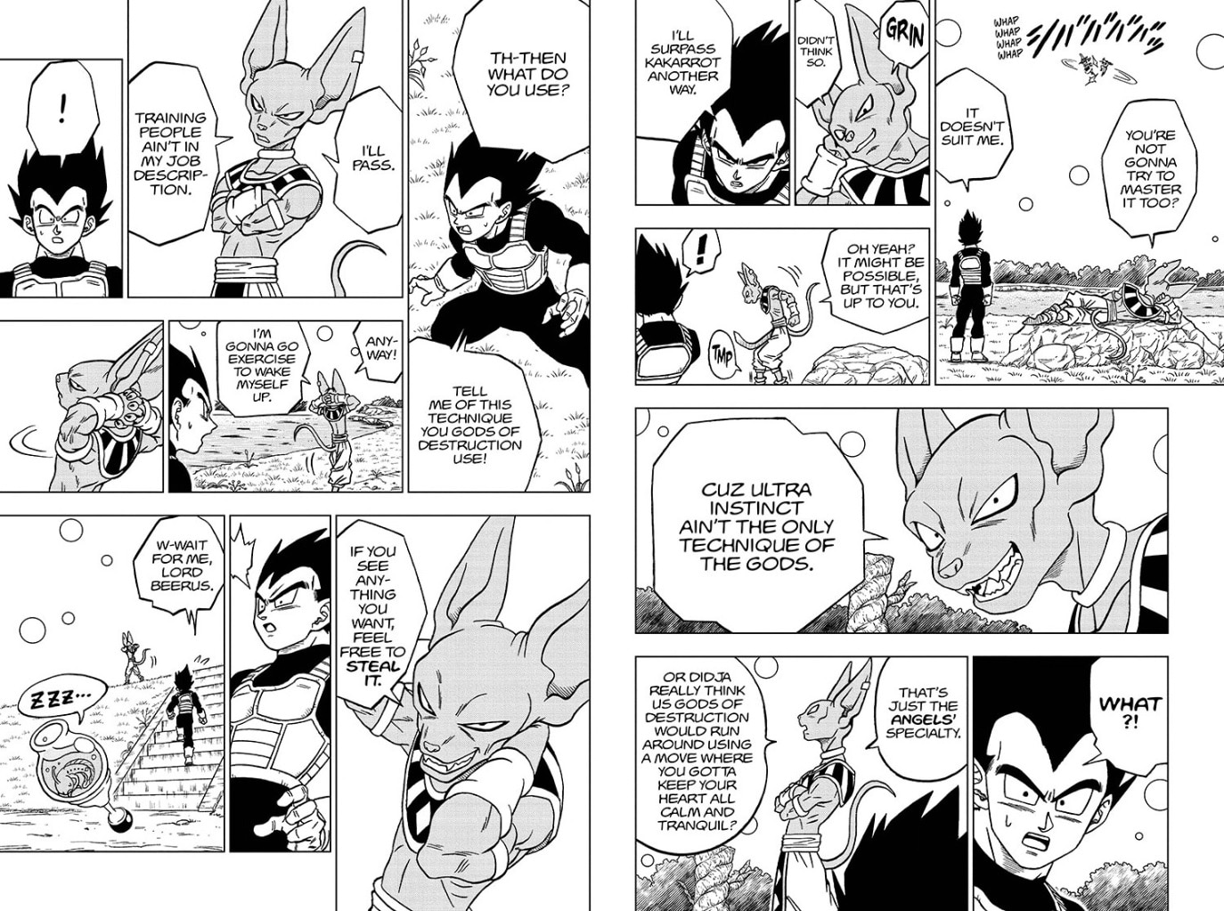 When Beerus hears that Vegeta is not interested in chasing Goku anymore, he lets Vegeta in on a little divine secret: Ultra Instinct is just one of the godly powers that can be mastered: “…Ultra Instinct ain’t the only technique of the gods,” Beerus tells Vegeta. “That’s just the Angels’ specialty. Or Did you really think us Gods of Destruction would run around using a move where you gotta keep your heart all calm and tranquil?”