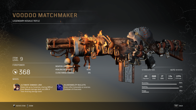 Outriders Legendary Assault Rifle - Voodoo Matchmaker