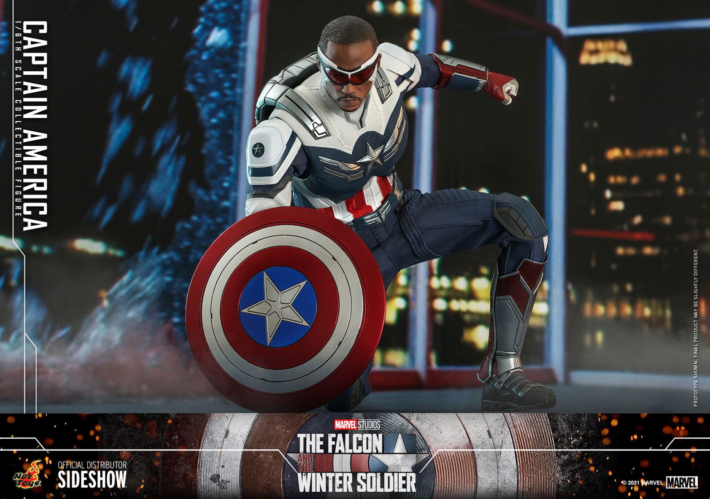 • A hand-painted head sculpt, with highly-detailed likeness of Anthony Mackie as Captain America in The Falcon and the Winter Soldier, complete with goggles and face gaiter