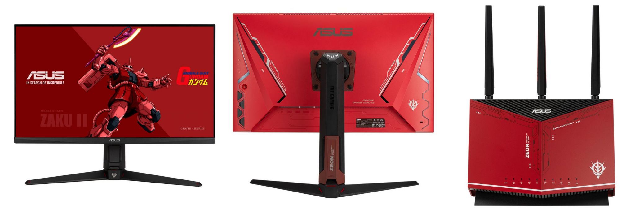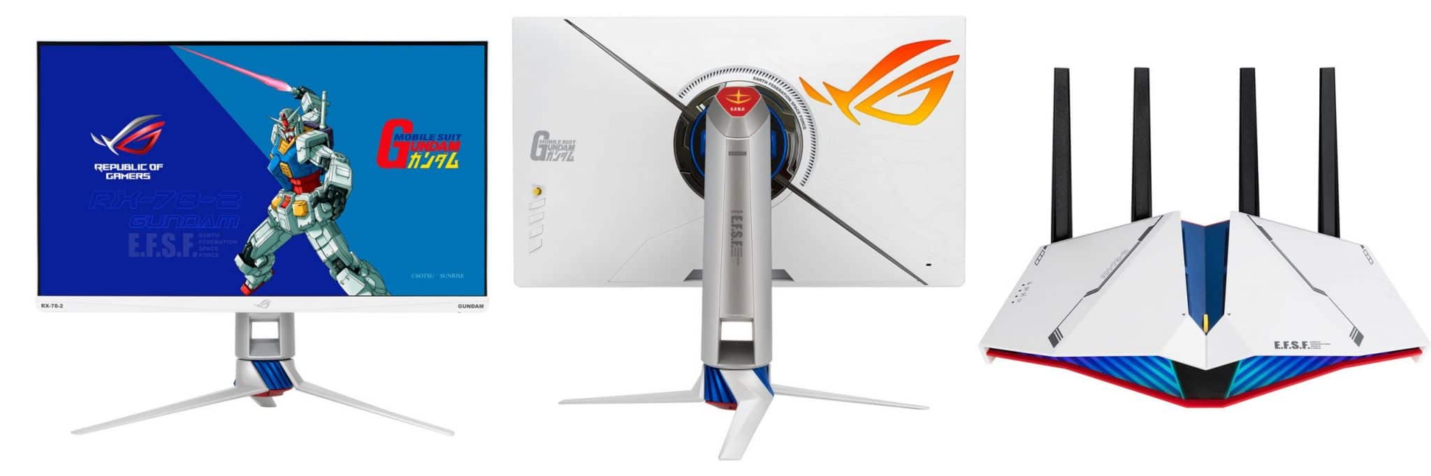 The RX-78-2 Mobile Suit Gundam series is an Asus ROG Strix XG279Q-G Gaming Monitor & RT-AX82U Router respectively. They function the exact same as their non-Gundam counterparts, just with these amazing paint works on them.