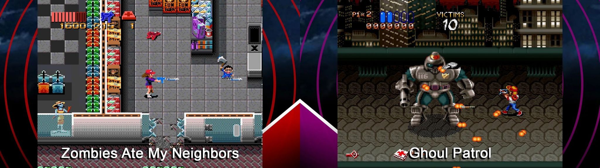 Enjoy 16-bit console gaming with the cult classic Zombies Ate My Neighbors and its sequel, Ghoul Patrol!