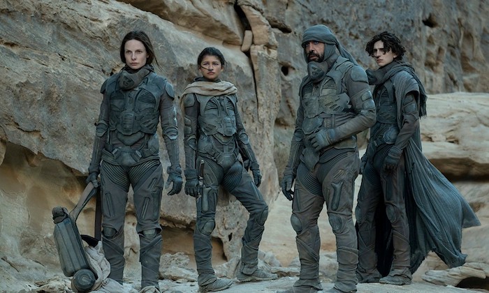 The cast is jam-packed with stars, including Timothée Chalamet as our hero Paul, Rebecca Ferguson as his mother Lady Jessica, Oscar Isaac as his father Leto Atreides, and Zendaya as love interest Chani. We also have Josh Brolin, Stellan Skarsgård, Dave Bautista, Stephen McKinley Henderson, Chang Chen, David Dastmalchian, Sharon Duncan-Brewster, Charlotte Rampling, Jason Momoa, and Javier Bardem.