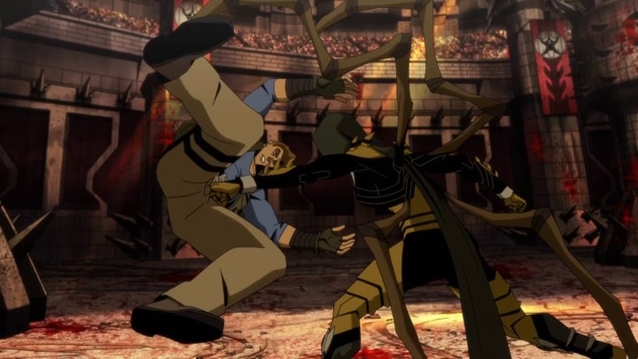 Where Mortal Kombat Legends: Battle of the Realms, as well as Mortal Kombat: Scorpion, excels is with its visual style. Animation is fluid with the characters themselves look almost Bruce Timm-like (Think Batman: The Animated Series) in design. But what people will like a lot more is the fact that Mortal Kombat Legends: Battle of the Realms does not shy away from showing some of the most brutal X-Ray moves and fatality moves that look like they were ripped straight from the games themselves. Blood sprays everywhere during fights, bones are shown being broken, and the fatality moves here are a step up more than what we enjoyed in the recent live-action Mortal Kombat movie.