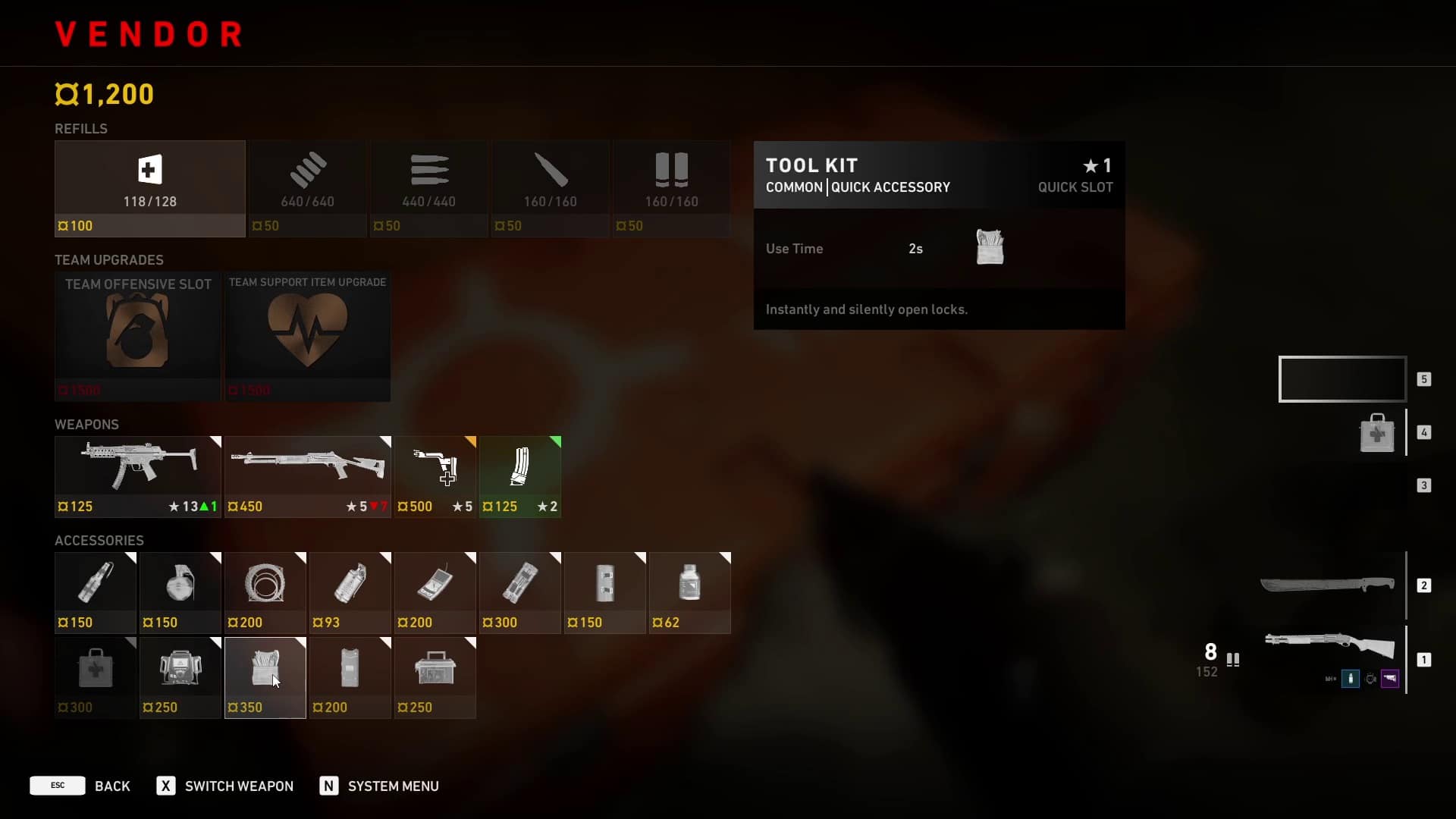 To help you fight your way through the undead, Back 4 Blood has a weapon system that not only gives you random weapons through each level (also with random attachments) but allows you to purchase and stock weapons, attachments, throwing weapons, healing items, and more through coins that you collect in each level. If you are feeling very flush with coins, you can buy a team effect that carries over through each run. This ranges from extra throwing weapons, overall health upgrade, faster run, and more. My hint would be to have someone carry a lockpick kit to open one of the special doors that pop up a few times through each level, giving you a huge load of coins, items, and weapons that could be better than what you have.