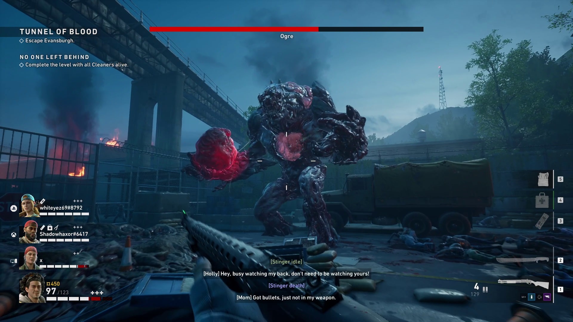 You play as one of 8 “Cleaners” (Doc, Evangelo, Hoffman, Holly, Jim, Karlee, Walker, and “Mom”), aka people who are immune to the worms, and you go about either taking down the hordes of the mutated and ridden or do other tasks along the way. You do meet up with a few other people during the main campaign, like an Army guy called Phillips, who treats you as nothing more than grunts who can do fetch quests and be a distraction to either find or help other people escape the area. Each cleaner character has its own unique set of stats and abilities that are used as a base for you to build upon.