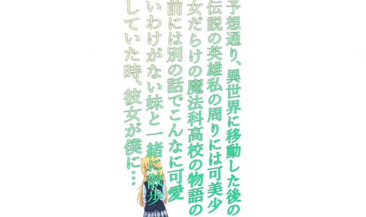“My Life Is Just As Wrong As I Expected After Traveling to Another World Where I’m Surrounded By Cute Girls At A Magical High School And Am Also The Fabled Hero of Legend, But Before I Tell You That Story I Have To Tell You This Story, In Which I Was Walking Along With My Unbelievably, Impossibly Cute Younger Sister Who Doesn’t Like Me At All, And She Said To Me It Was My Fault She Wasn’t Popular No Matter How She Looked At It As We Walked To School Together, And We Stopped To Look At A Garden, Which Had A Flower Whose Name I Don’t Remember, When Suddenly A Portal Opened Up To Another World And When I Landed In A Field And My Face Was Buried In The Largest Pair of Boobs I’d Ever Seen, And My Sister Hit Me And Called Me An Idiot While Blushing, But Then The Girl I Landed On Saw The Birthmark On My Hand And Gasped And She Grabbed My Hand And I Blushed But She Started Dragging Me Away And My Sister Got Mad And Chased After Us And I Asked Where We Were Going, And She Said She Was Taking Us To Grimheart Magic School, Where She Was The School President, And Then I Gasped Because I Was Now In A Magical World, And When We Got To The School Which Was A Giant Castle I Asked The Girl What Her Name Was And She Said It Was Akane Yuusha, Which I Thought Was A Tad Strange Since She Had Blonde Hair And Blue Eyes And The Entire Aesthetic Of The School Seemed Very Ancient European, But I Forgot About All Of That When She Told Me We Needed To See The Headmaster Because She Had Been Taught That The Mark On My Hand Was The Symbol Of The Reincarnation Of The Legendary Dragon Hero Of Legendary Literature, And I Said That Was A Cool Thing To Be Taught Because At Our School The Only Book We Learned Was Atlas Shrugged, And She Asked What That Was And I Told Her I Was The Book Our Society Based Its Philosophy On A Speech From, And She Asked Me To Recite The Speech, Which I Did, And The Speech Went “For Twelve Years You Have Been Asking…