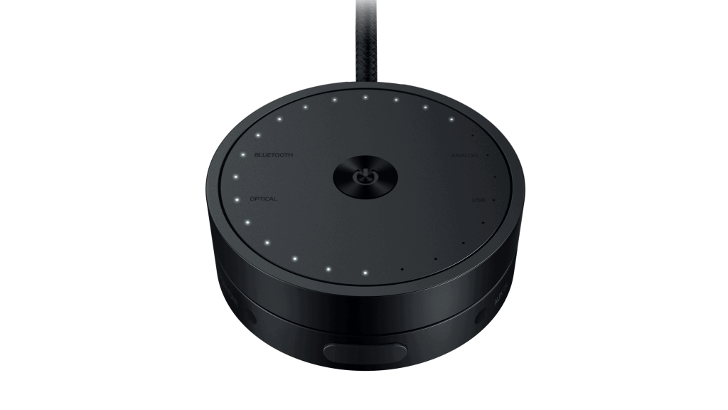 The Razer Nommo Pro features USB, Optical, and 3.5mm inputs, with Bluetooth compatibility, as well as a control pod that features the volume control, source control and 3.5mm headphone jack at an easy to access location. EQ settings can be controlled through the Razer Synapse 3 app, and there is a dedicated Nommo Pro app for Android and iOS.