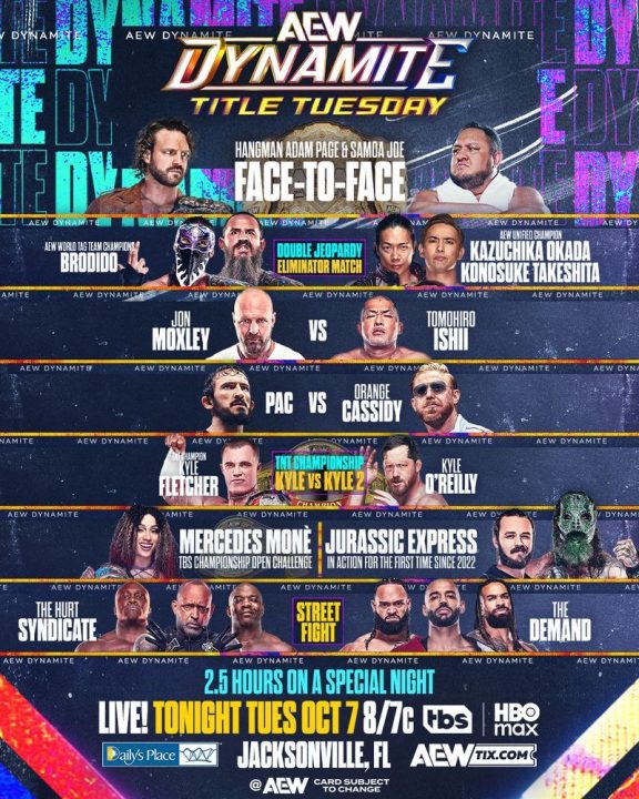 For me, Tuesdays were meant for Taco Tuesdays, but today is a special day…it’s Title Tuesday! Coming back to the home base of AEW, Daily’s Place, TK graced us tonight with a super-loaded two-and-a-half-hour Dynamite! With ongoing builds to WrestleDream, a surprise opponent for Mercedes Mone, a rare Pac vs OC treat, and the first Jurassic Express match since 2022, there are plenty of things to look forward to as I do my AEW Dynamite Recap!