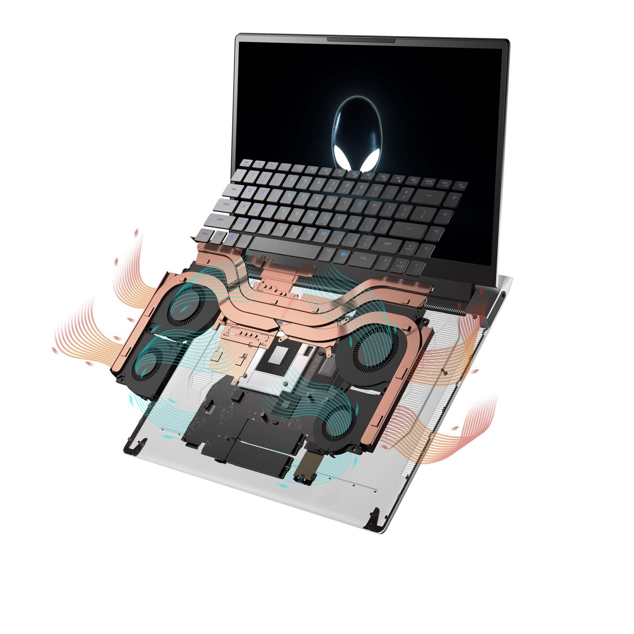 Along with HyperEfficient Voltage Regulation for extended performance during long hours of gameplay, the X-Series offers more heat dissipation and gaming performance. The new exclusive Alienware Quad Fan design blows air efficiently through the system, chassis, and internal hotspots, designed to help keep your gaming engines cool wherever you go. Finally, our patent-pending Smart Fan control technology utilizes AI to enable improved application performance as each fan independently spins up, slows down, or remains steady according to various sensors strategically placed around core system components. Pretty cool, huh?