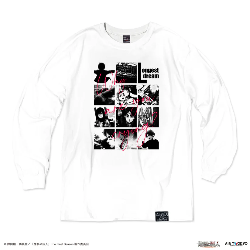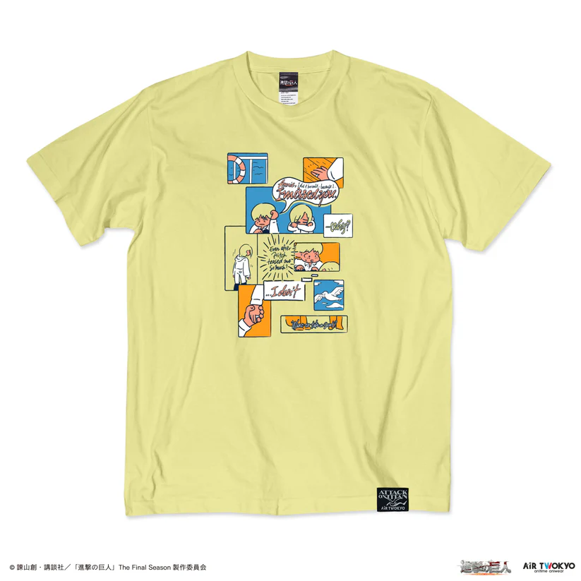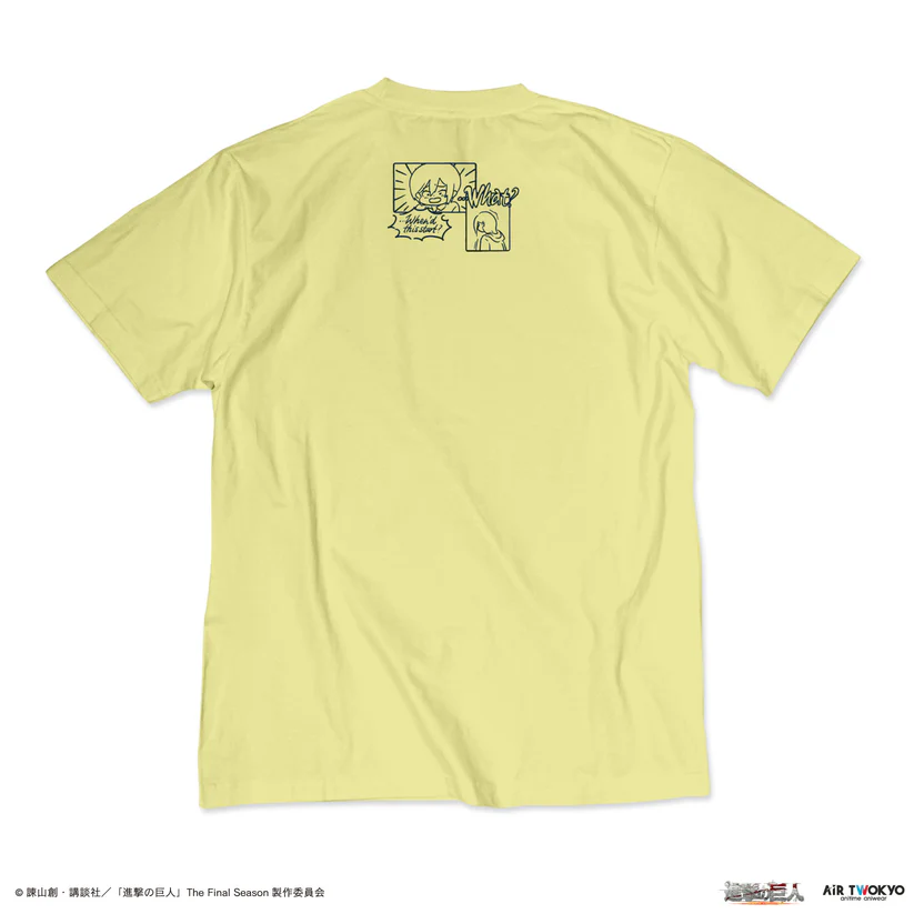 AIR TWOKYO transforms anime, manga, and music content into original streetwear through bold graphics and inventive layouts. This collaboration spotlights standout scenes—Armin’s heartfelt “Annie, I did it because… because I… …I missed you” to Annie—while cleverly integrating front-and-back prints for a fresh visual narrative. Alongside bright, pop-tinged tees, the lineup includes minimalist black-and-white pieces that capture the show’s somber mood.