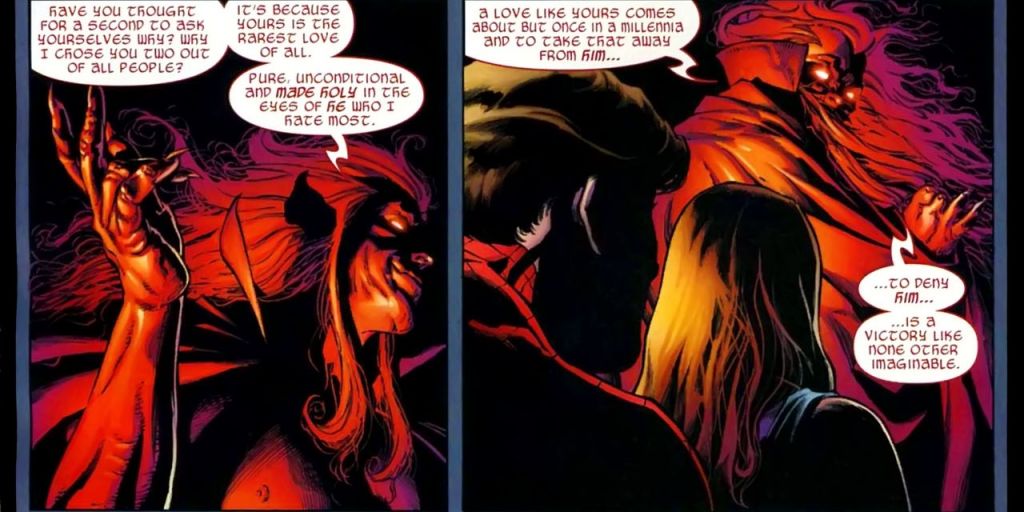 One More Day was a 4 part event where Peter tries to find some way to save Aunt May, who was shot thanks to an assassin hired by The Kingpin who now knows the identity of Spider-Man (Thanks Civil War). While there are some good moments during the Civil War/Back in Black/One More Day trilogy, you could see things coming from a mile away. Peter would never let Aunt May die, and the writers would never kill her off because that would mean doing something that evolves Peter’s character more than the marriage ever did. But story wise, Peter goes to Doctor Strange, who refuses to help, this leads Peter to asking everyone from friends and teammates, to even some of his greatest enemies for help to save Aunt May. As the clock ticks down on Aunt May’s time on Earth, one being appears and offers both Peter and Mary Jane a deal. That being is the “devil” of the Marvel Universe: Mephesto; and his deal is simple: He will return Aunt May to life, and even removing the real identity of Spider-Man from the minds of everyone on Earth, in exchange for one thing… The marriage between Peter Parker and Mary Jane Watson-Parker. As Mephesto puts it: